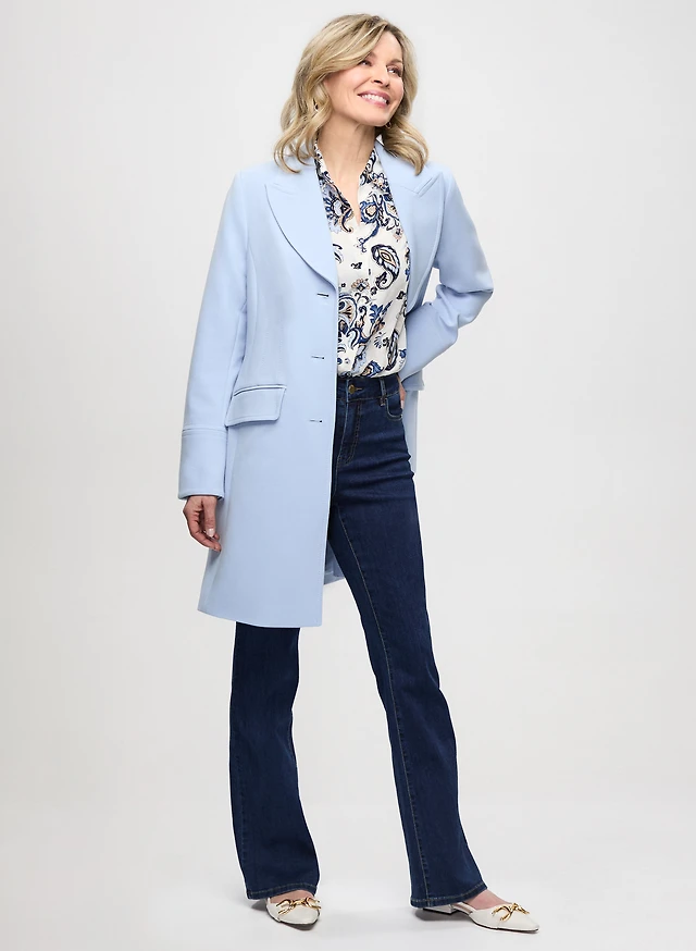 Veste longue à col cranté et jean à enfiler