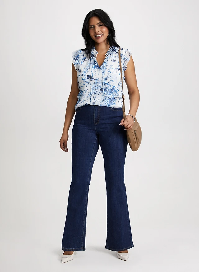 Blouse à imprimé floral et jean semi-évasé