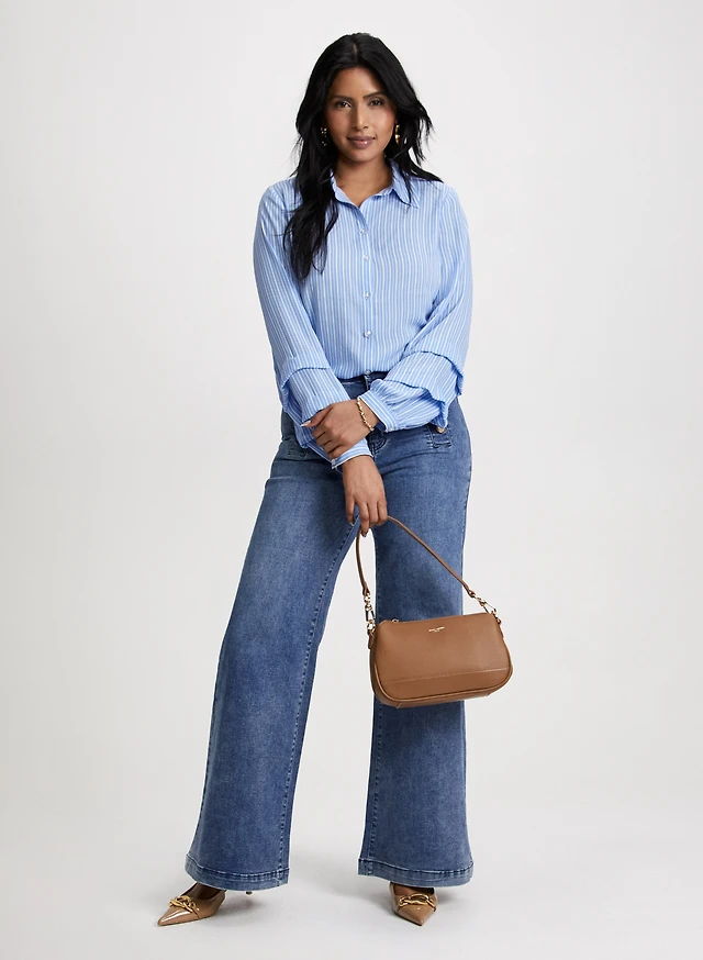 Chemisier rayé à manches étagées et jean large