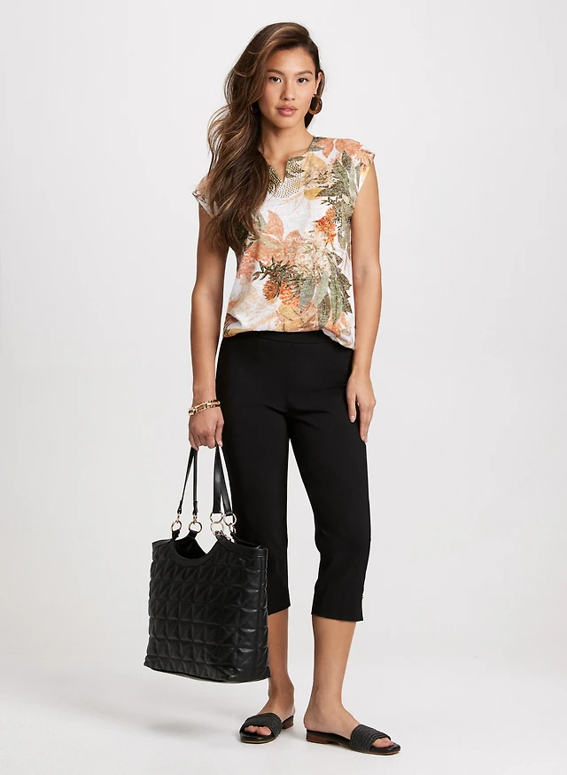 T-shirt à bordures florales et capri en bengaline