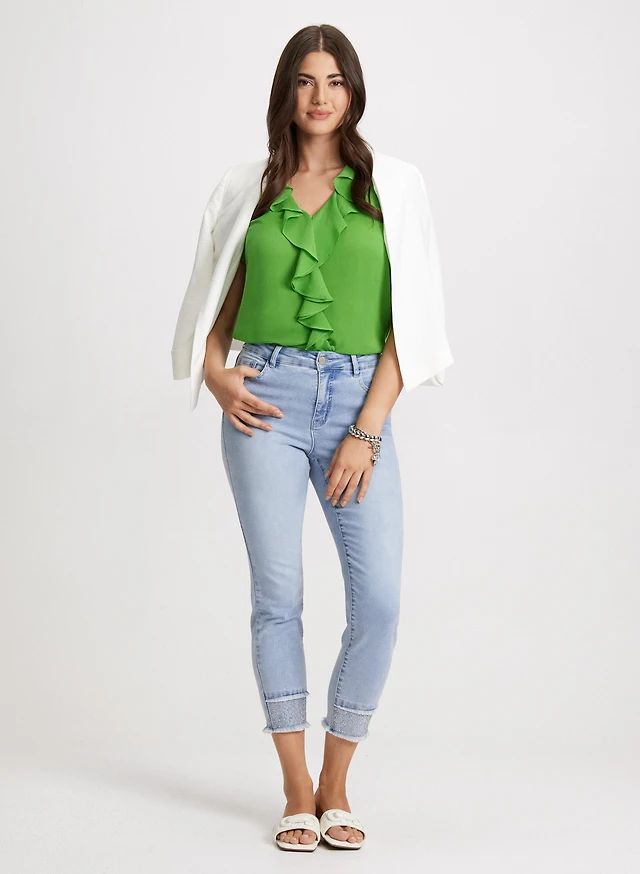 T-shirt à boutons décoratifs et jean à jambe étroite
