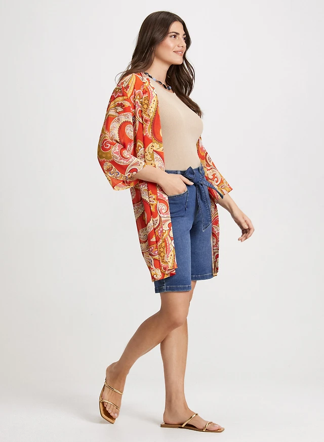 Blouse en chiffon à volants et pantalon à motif palmiers
