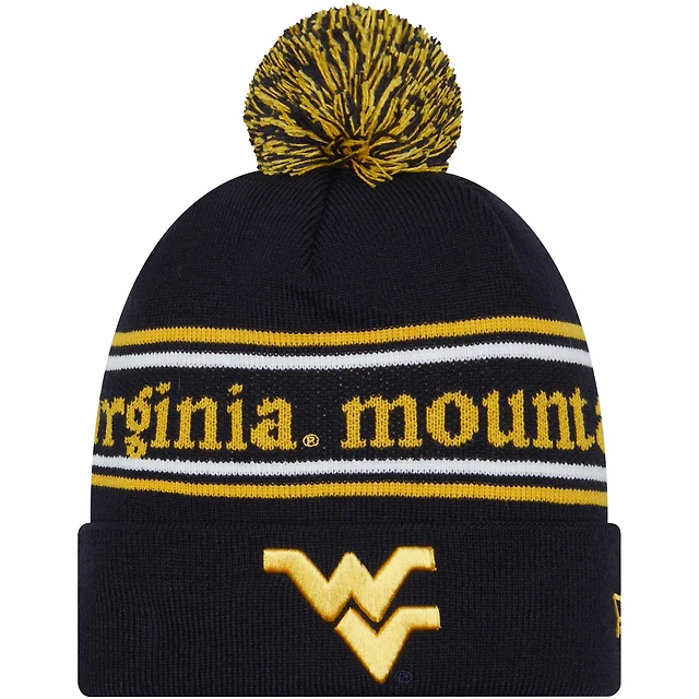 Bonnet en tricot à revers et pompon New Era pour hommes, bleu marine, West Virginia Mountaineers Marquee