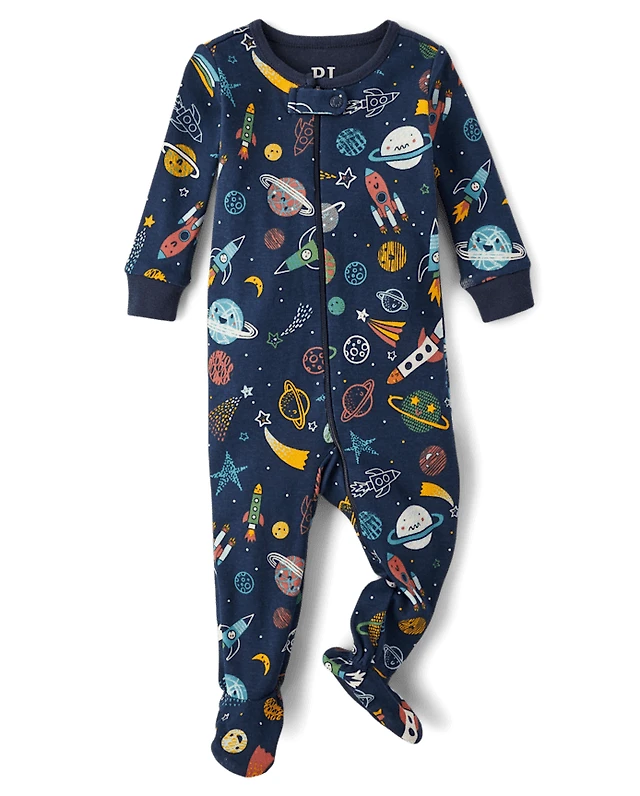 Pyjama une pièce en coton à pieds pour bébés et petits garçons, coupe ajustée, sur le thème de l'espace