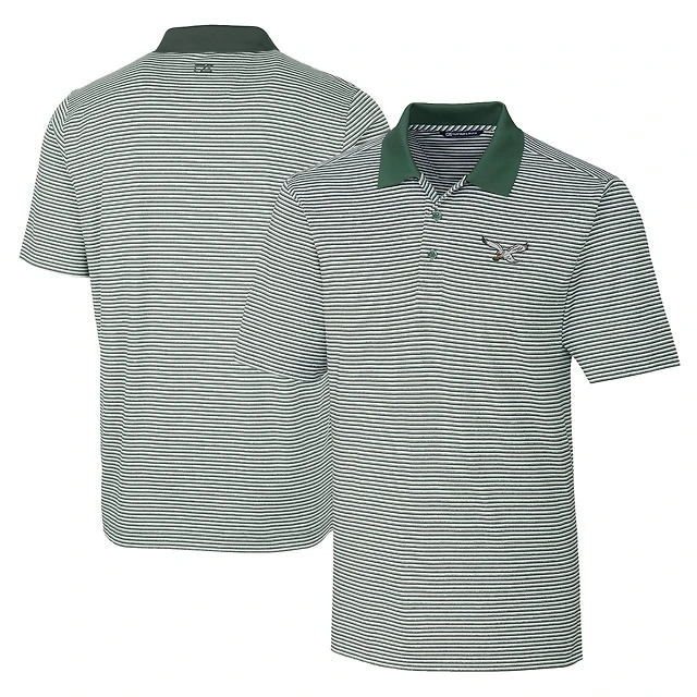 Polo stretch à rayures ton sur vert nuit Cutter & Buck pour homme, modèle Philadelphia Eagles Forge, de la marque Buck.
