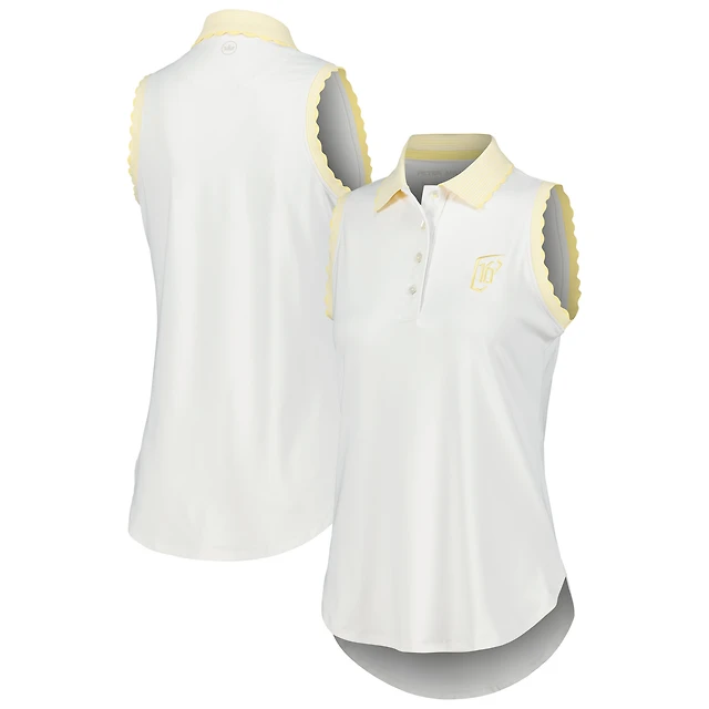 Polo en jersey extensible sans manches Peter Millar blanc/jaune WM Phoenix Open Opal pour femme