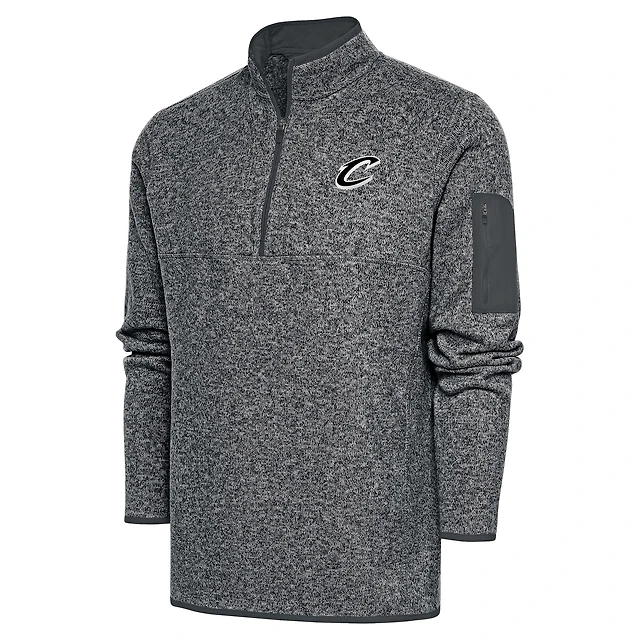Veste Antigua Heather Grey pour homme avec logo métallique Fortune et fermeture éclair quart de tour des Cleveland Cavaliers