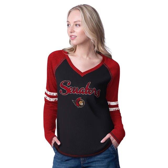 T-shirt à lacets manches longues pour femme avec logo Hat Trick des Maple Leafs de Toronto
