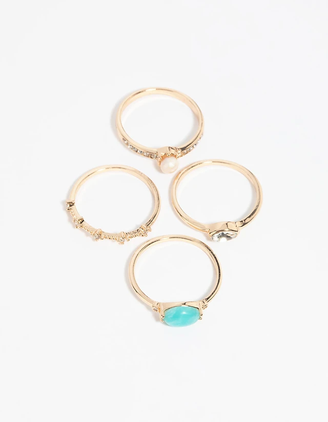 Ensemble de bagues mixtes Diamante & Pearl plaqués or 5-pack