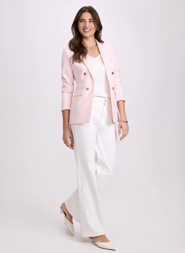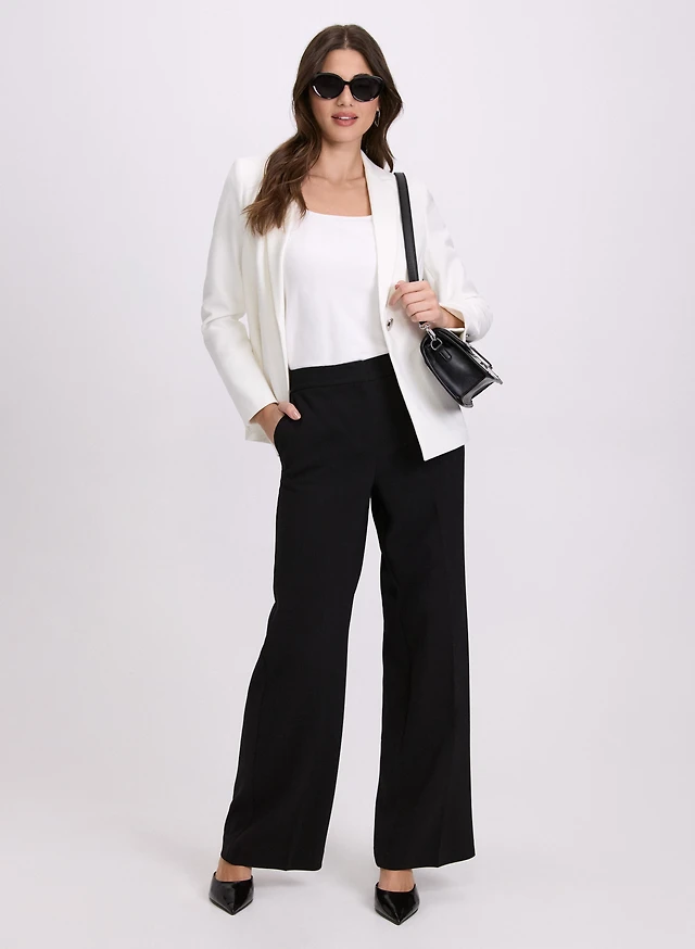 Blazer ouvert à manches repliées et pantalon à jambe large