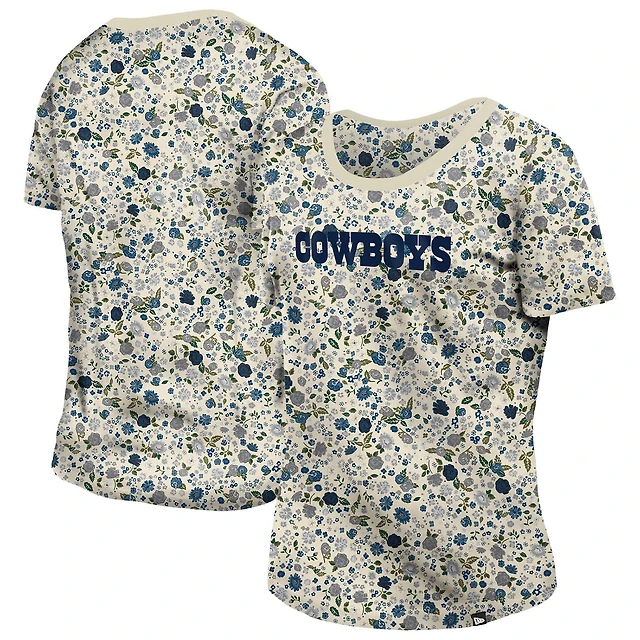 T-shirt à col rond floral Glam Game crème New Era pour femme des Cowboys de Dallas