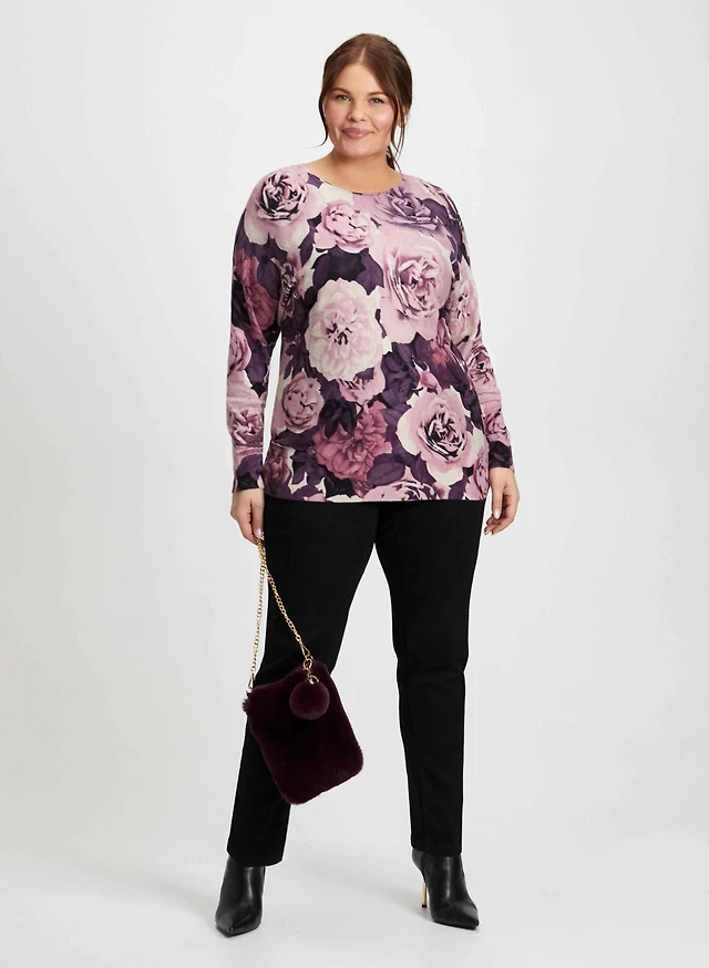 Pull tunique fendu avec jean à enfiler et anneaux dorés