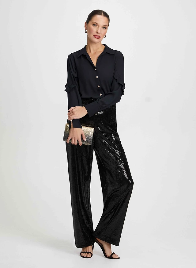Blouse avec lien à nouer et pantalon à détail de boucle
