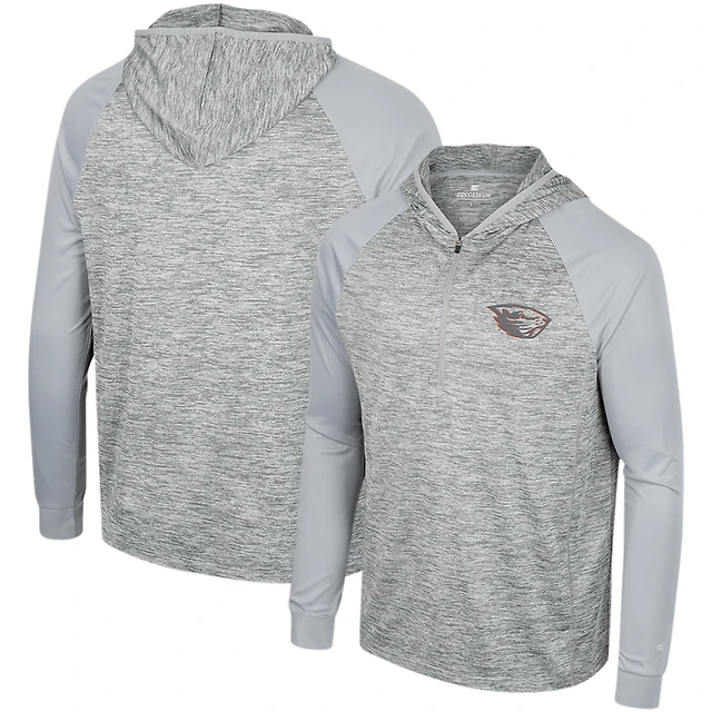 Men's Colosseum Gray Oregon State Beavers Cybernetic Raglan Quarter-Zip Hooded Top