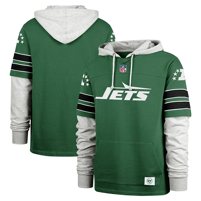 Sweat à capuche pour homme « 47 Kelly Green » des New York Jets, motif double tête Blitz, cornerback