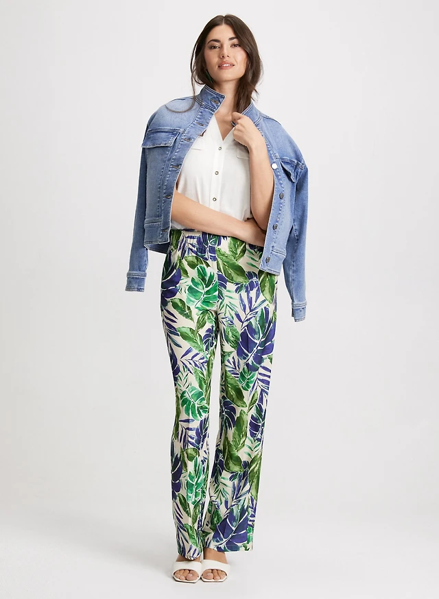 Haut à motif feuilles et jean à enfiler