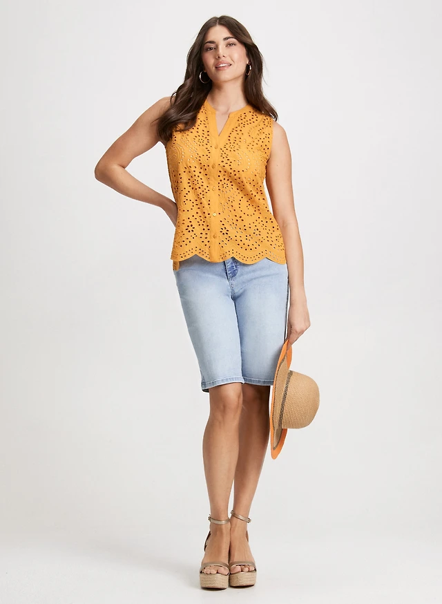 Blouse à oeillets et bermuda en denim
