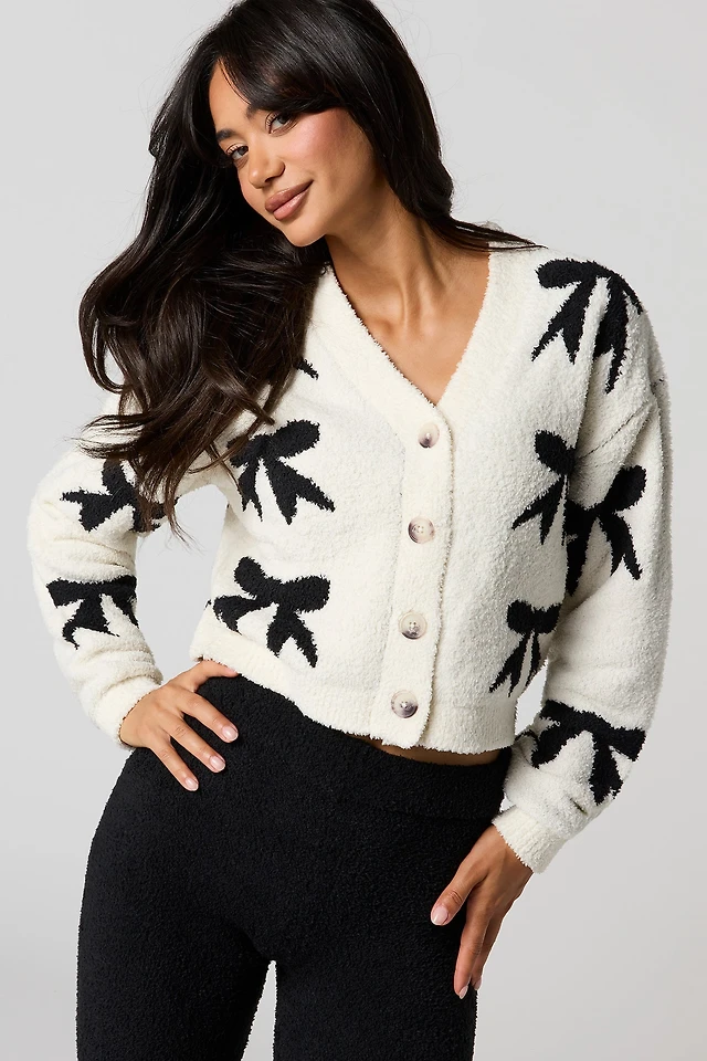 Cardigan à manches longues bouffantes et col rond