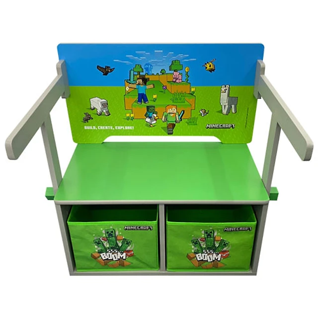 Banc/table repliable Minecraft avec boîtes de rangement - Vert/Bleu/Gris