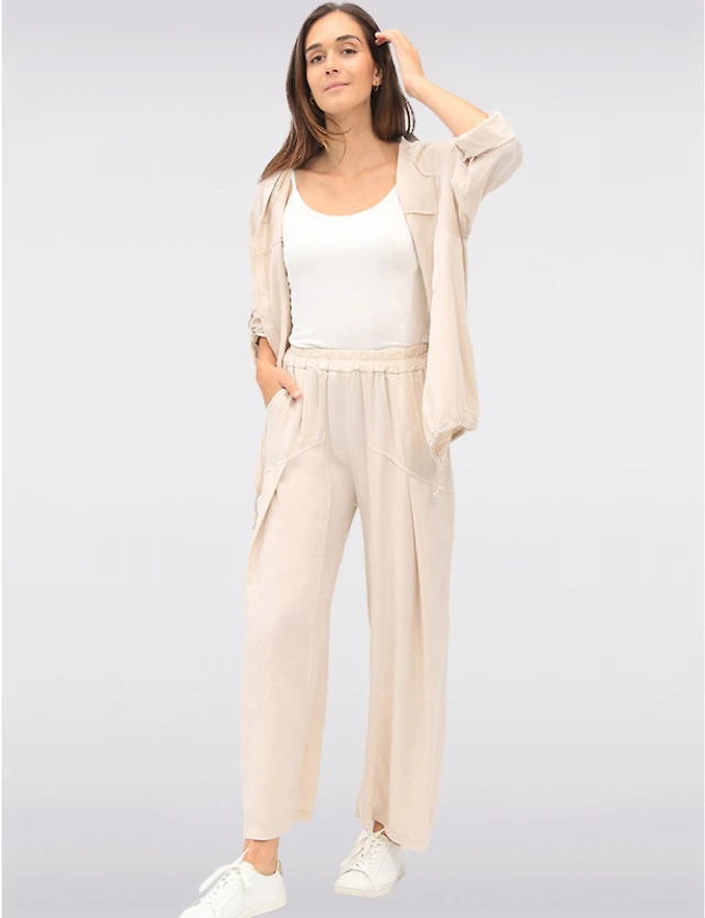 Manteaux | La maison du manteau au Québec Pantalon Froissé à 4-Poches Coupe Ajustée et Taille Elastique par Froccella