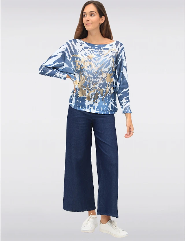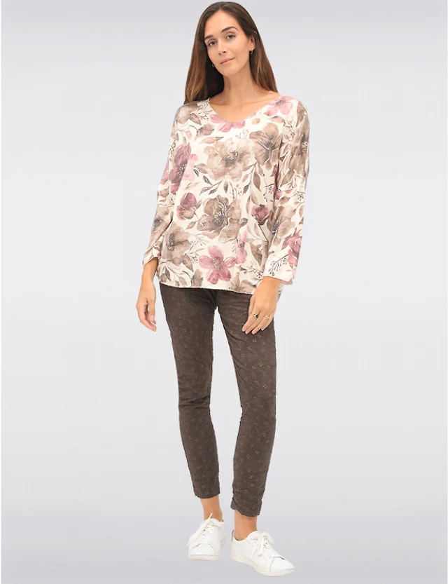 Manteaux | La maison du manteau au Québec Haut en tricot à Fleurs avec Manches Dolman 3/4 et Col Bateau par Froccella