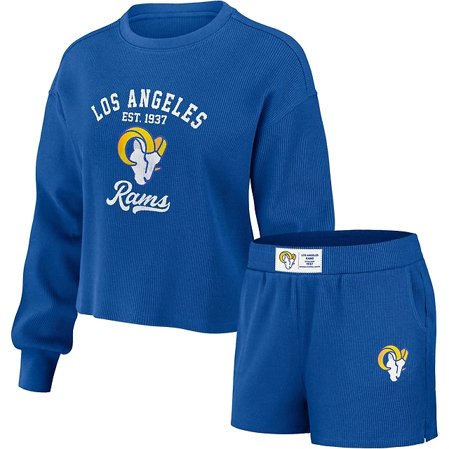 Ensemble de détente pour femme WEAR by Erin Andrews Royal Los Angeles Rams avec t-shirt à manches longues et short en tricot gaufré