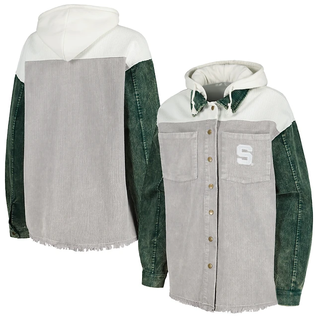 V105234 Okl Womens Gdr Vintage Wash Cordon Hooded Button Up Shacket JACLAD