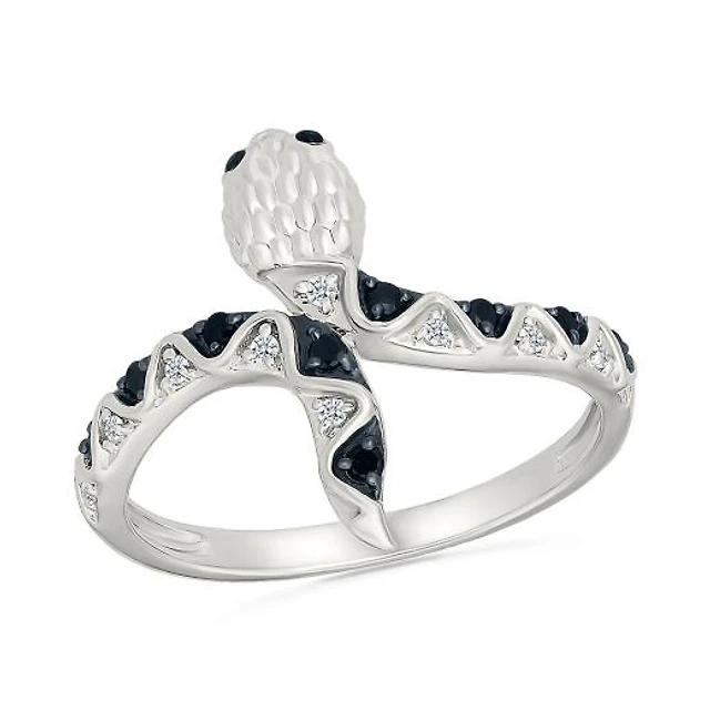 Sterling Silver 0.37CTWBlack Diamond Link Ring