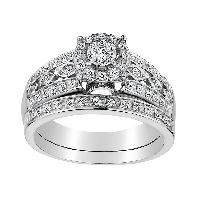 .50 Carat of Diamonds Halo Ring Set, Silver.....................NOW