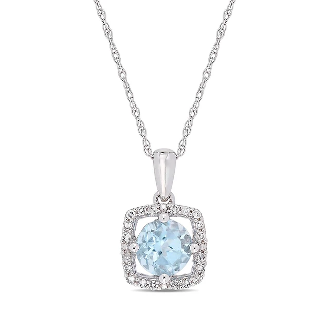 Julianna B 10K White Gold Diamond and Blue Topaz Fashion Pendant with Chain