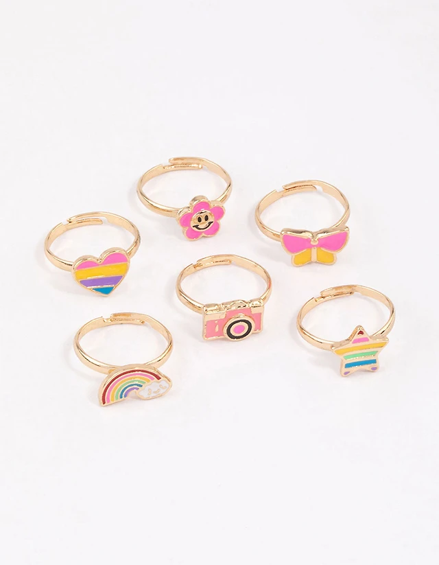 Ardene 6-Pack Bow & Heart Rings in Gold | Size Small