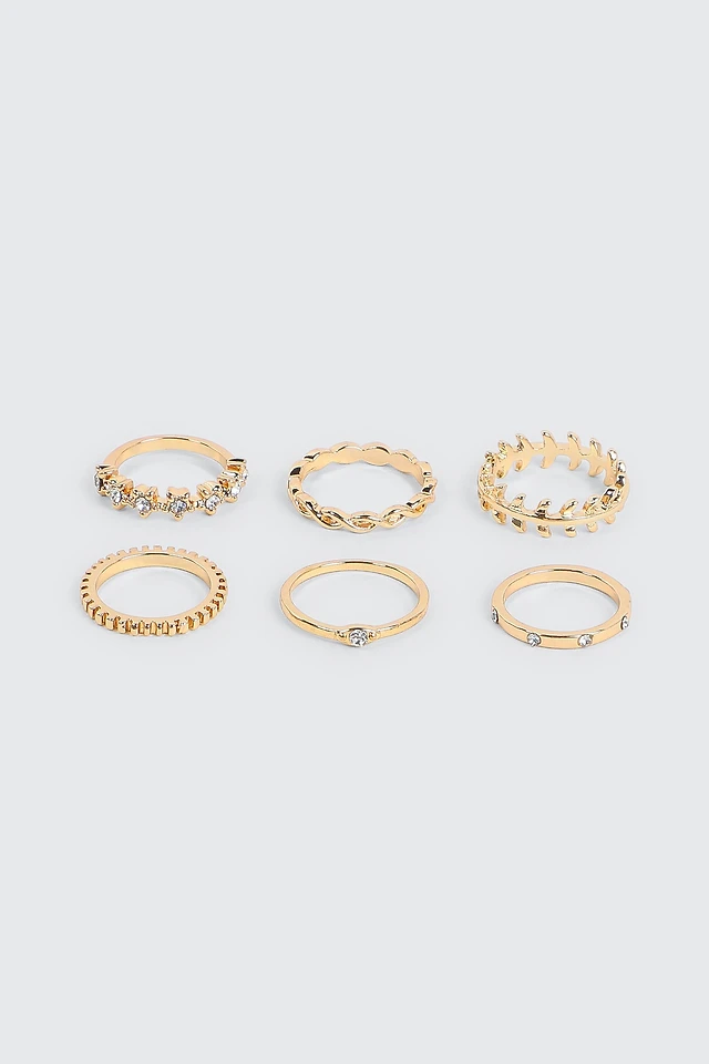 Ardene 6-Pack Textured and Twisted Rings in Gold | Size