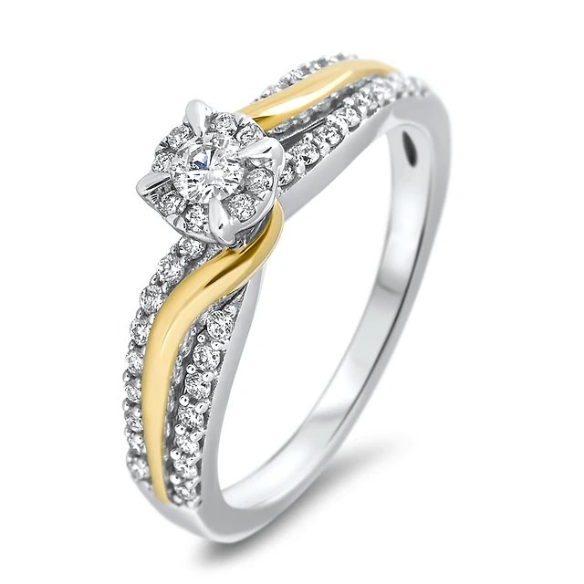 Engagement Ring with 1.00 Carat TW of Diamonds 14kt White and Yellow Gold