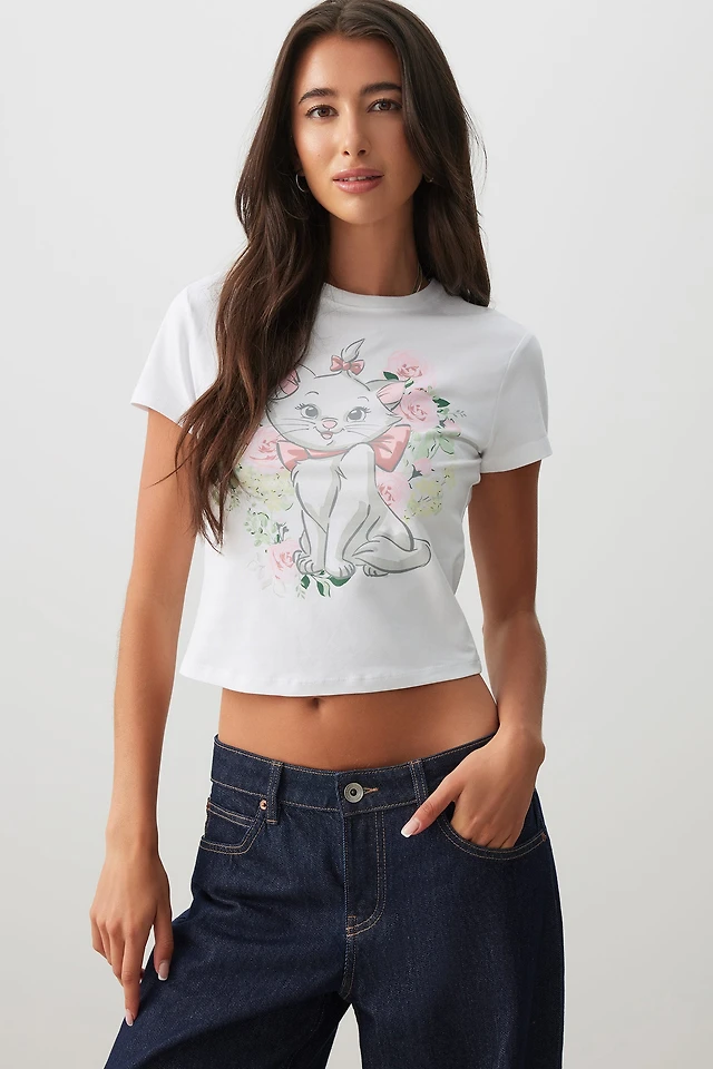 Ardene Crop Cap Sleeve Graphic T-Shirt in | Size | Cotton/Elastane
