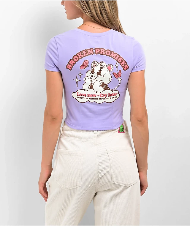 Broken Promises Cry Later Purple Crop T-Shirt