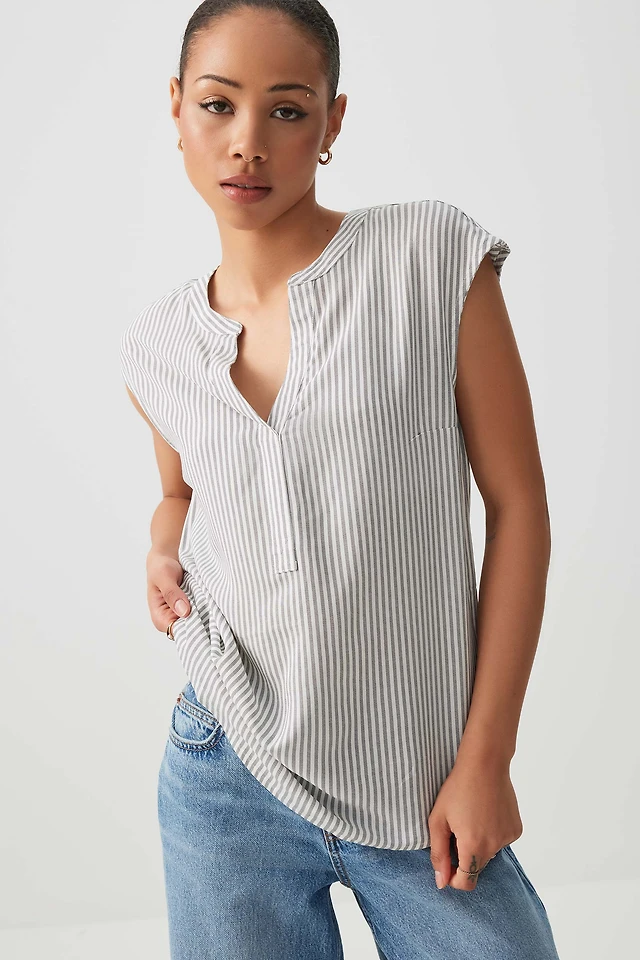 Ardene Brushed Jersey Henley T-Shirt in Off-White | Size | Cotton/Elastane