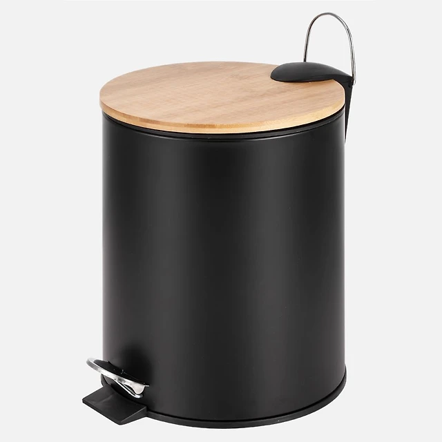 Black Step Bin with Slim Bamboo Lid Powder Coating Body, 5L