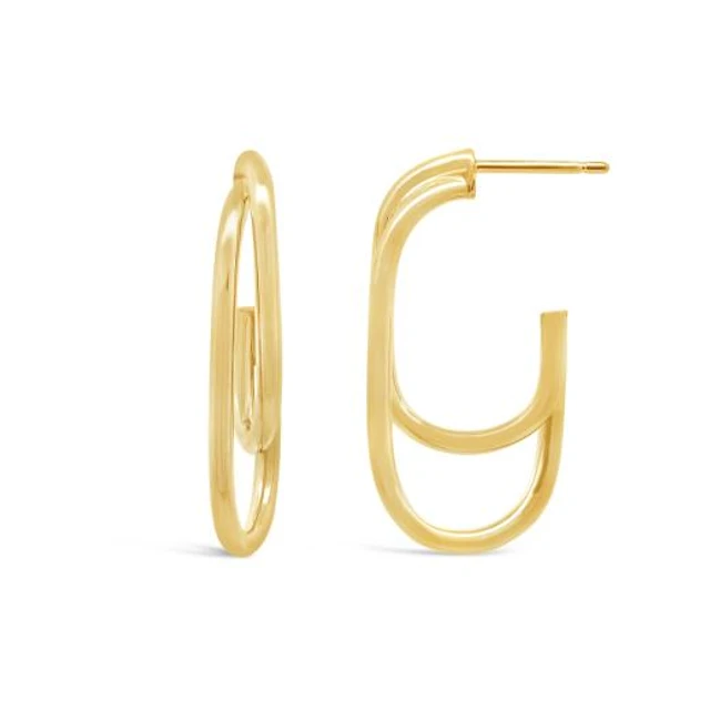 10K Yellow Gold Oval Half Hoop Earrings