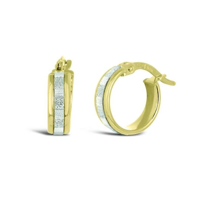 10K Yellow Gold Glitter Huggie Hoops