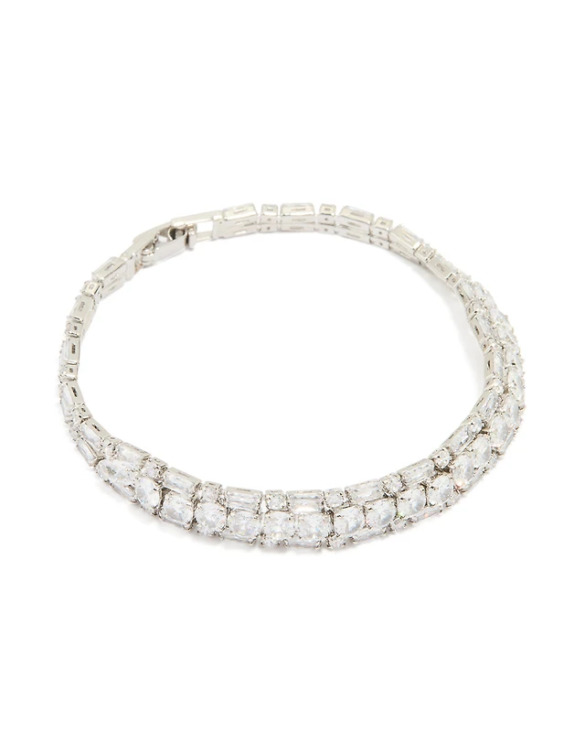 Silver Cubic Zirconia Rectangular Tennis Bracelet