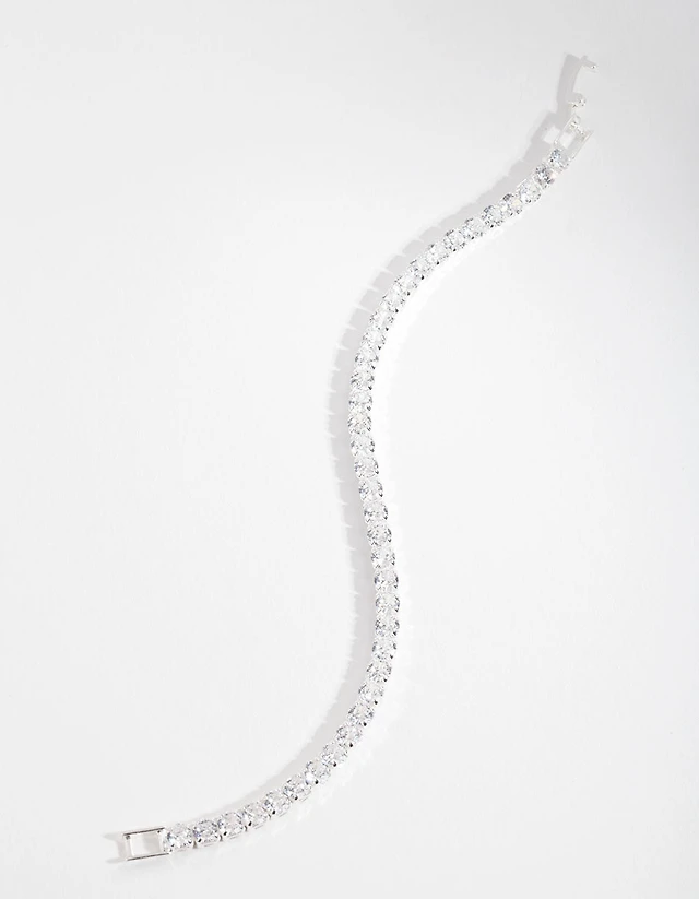 Silver Cubic Zirconia Earrings & Tennis Bracelet Set