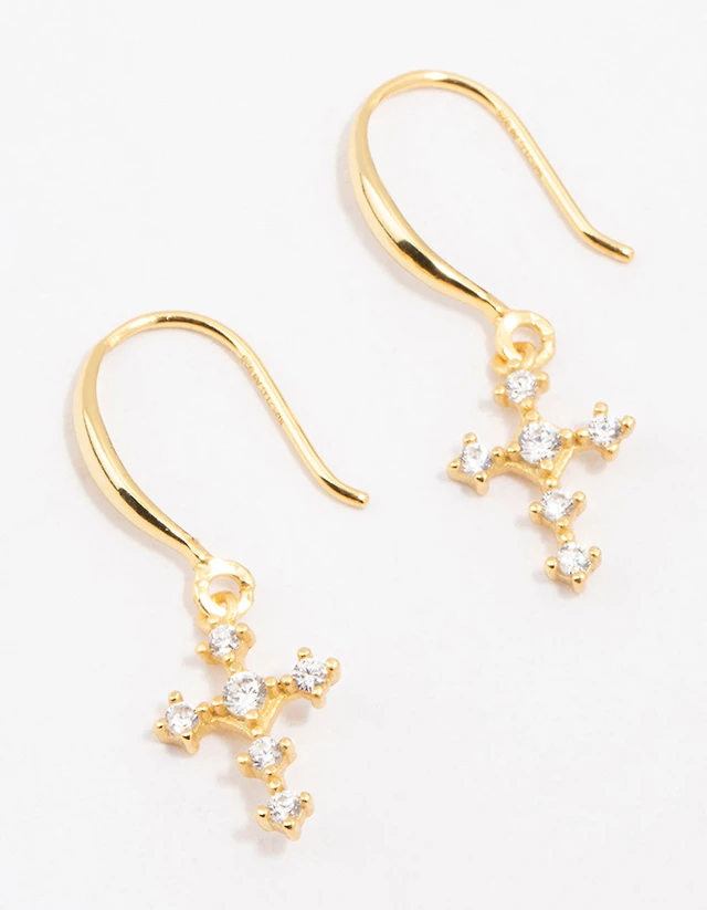 Gold Plated Sterling Silver Cubic Zirconia Cross Dangly Earrings