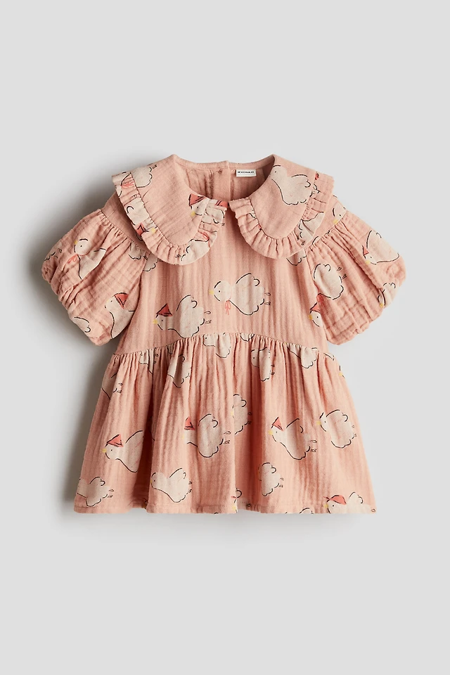 Balloon-sleeved Cotton Dress