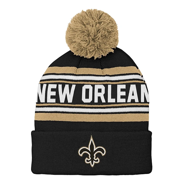 Youth Black New Orleans Saints Jacquard Cuffed Knit Hat with Pom