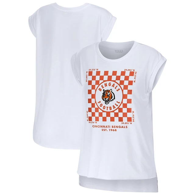 Women's WEAR by Erin Andrews White Cincinnati Bengals Checker Muscle Tank Top