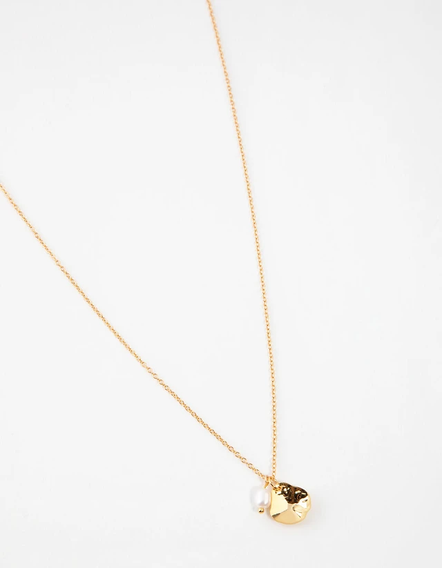 Gold Plated Freshwater Pearl & Molten Necklace Set