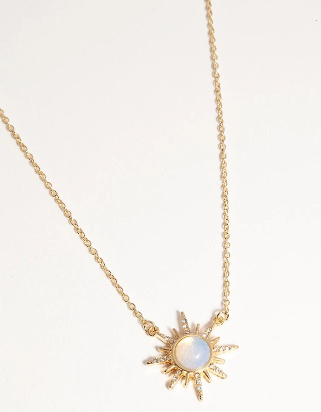Gold Plated Diamante Semi Precious Jade Sun Necklace