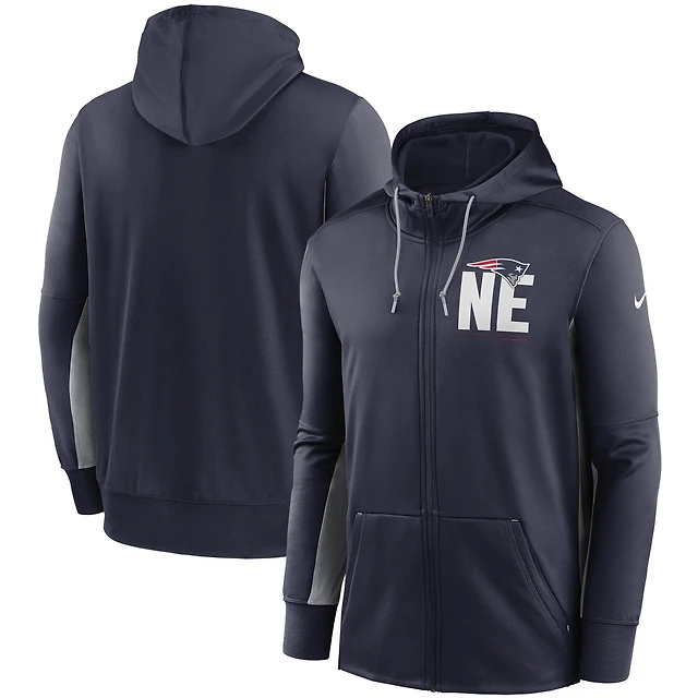 Men's Nike Navy/Gray New England Patriots Mascot Performance Full-Zip Hoodie