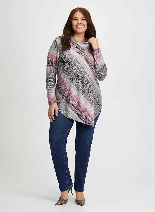 Asymmetric Funnel Neck Top & Slim-Leg Ankle Pants