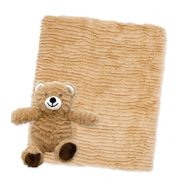 Baby Mode Signature Ridged Plush Toy with Blanket: Tan Bear